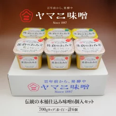 「ヤマニ味噌」が手がける、今や希少な木桶仕込みのセットです。
